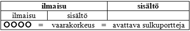 Esimerkissä olen seurannut jonkin matkaa Econ esittelemää esimerkkiä, joka puolestaan on saatu Tullio de Maurolta. <Eco: A Theory of Semiotics, 1.1.–1.3. s. 33–38>