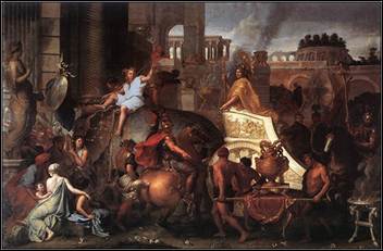 Monimutkaisempien yhteiskuntien kohdalla tilanne käy hankalammaksi, koska luokkien välinen taistelu, niiden väliset »antagonismit» eli vastakohdat tai ristiriidat ovat omiaan mutkistamaan taloudellisen perustan vaikutusta. Silti vallitseva taide kertoo täälläkin vallitsevasta mielialasta (vaikka tämä olisikin vain hallitsevien mielialaa). Plehanovin esimerkkinä on Ludvig XIV:n Ranska, jossa ihanteena oli maine ja voitto ja taide vastaavasti ylevää. Esimerkkinä olkoon Charles Le Brunin maalaus Aleksanteri saapuu Babyloniaan (noin 1664):